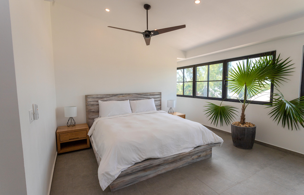 Wilson Point Ambergris Caye 087 Published May 3, 2022 at 1024 × 657 in Wilson Point Ambergris Caye 087 Second upper level bedroom with king bed & en suite bath